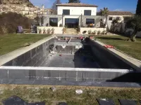 Top Liner, basé à Aix-en-Provence, est intervenu à Cadenet, dans le Vaucluse, pour rénover une piscine carrelée de 18 m x 5 m, équipée d’un coffre à volet roulant et d’une plage sur toute la largeur.